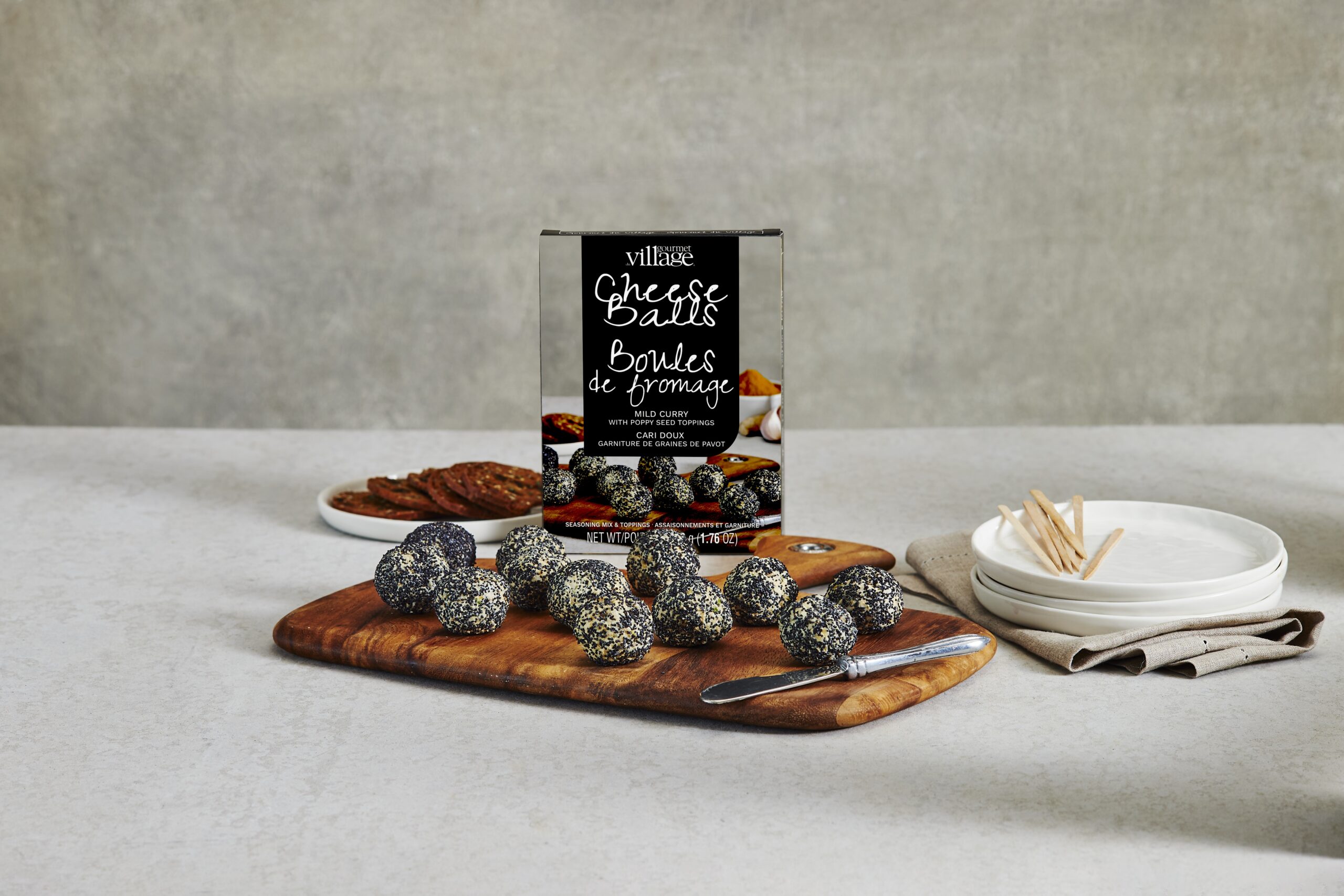 This mild, flavorful cheeseball mix combines cheese, gentle curry spice, onion, garlic, and signature herbs and spices for a warm, balanced profile. Mix with cream cheese, then finish with the included poppy seed garnish for a striking presentation.